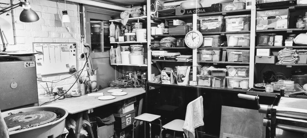 Dernièrement, je passe pas mal de temps dans mon atelier. Normal, je vous concocte pleiiiiiiins de jolies pièces en céramique pour les fêtes de fin d’année. Du coup, je dois dire que mes 9m2 sont rentabilisés au maximum. Le plus grand challenge reste l’organisation optimale du temps et de l’espace pour faire en sorte de sortir régulièrement des jolies pièces et qu’elles soient prêtes à temps pour les commandes et les marchés à venir. Je ne suis pas circassienne mais je jongle entre 1001 choses.